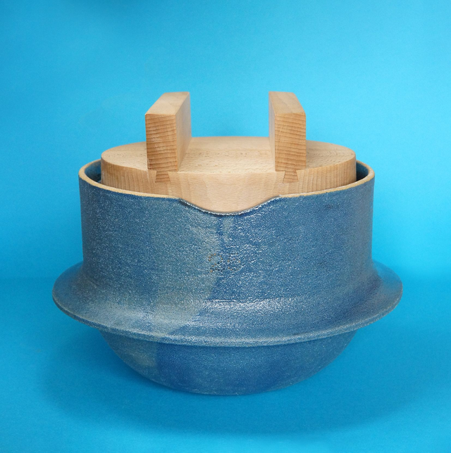 Mon hagama a un couvercle en hêtre, qui deviendra repose-plat au service, fabriqué par l'excellent Byron King. Il permet de cuire 1,5 kg (ou 10 gō) de riz en 45 minutes environ et de le maintenir au chaud pendant au moins 45 minutes supplémentaires.